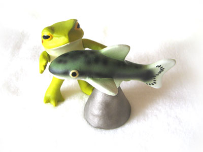 リアルなかえるは海洋堂に任せて、ケロミンやトイザラスのパペット同様、愛嬌のある、二本足のカエル・・・他のクマとかのキャラクターもみんな擬人化した、二本足なので、これからもせっかくのカエルたちを育ててください。
