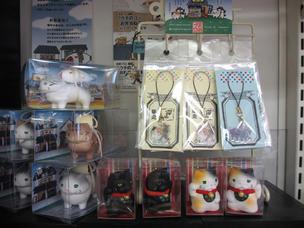 猫や限定のお弁当ねこ(おやき)やストラップ、ポストカードの