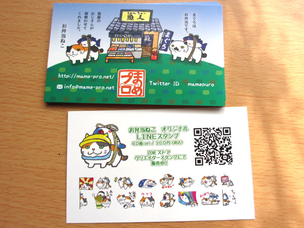 配布する名刺は、表はいつも通りですが、裏にはLINEスタンプの