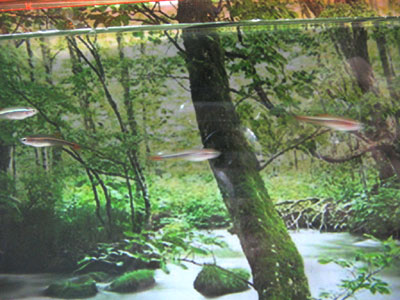 入ってきたときに魚たちが一斉に水草にササッと隠れたのは笑えました。